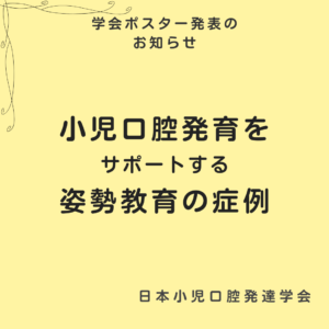 このたび、日本小児口腔発達学会でポスター発表をさせていただくことになりました。 テーマは「小児口腔発育を効果的にサポートする正しい姿勢教育の症例」です。 健全な小児口腔発育を支えていくためには、口の中だけでなく 呼吸・舌 […]