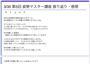 ― 院内研修で見えた、姿勢が変わっていくプロセス ― 院内研修の中で、ある呼吸法を体験したあとスタッフからこんな声がありました。 ・横隔膜を動かす感覚が初めてわかった・呼吸後、体の緊張がゆるみ、呼吸がしやすくなった・足裏 […]